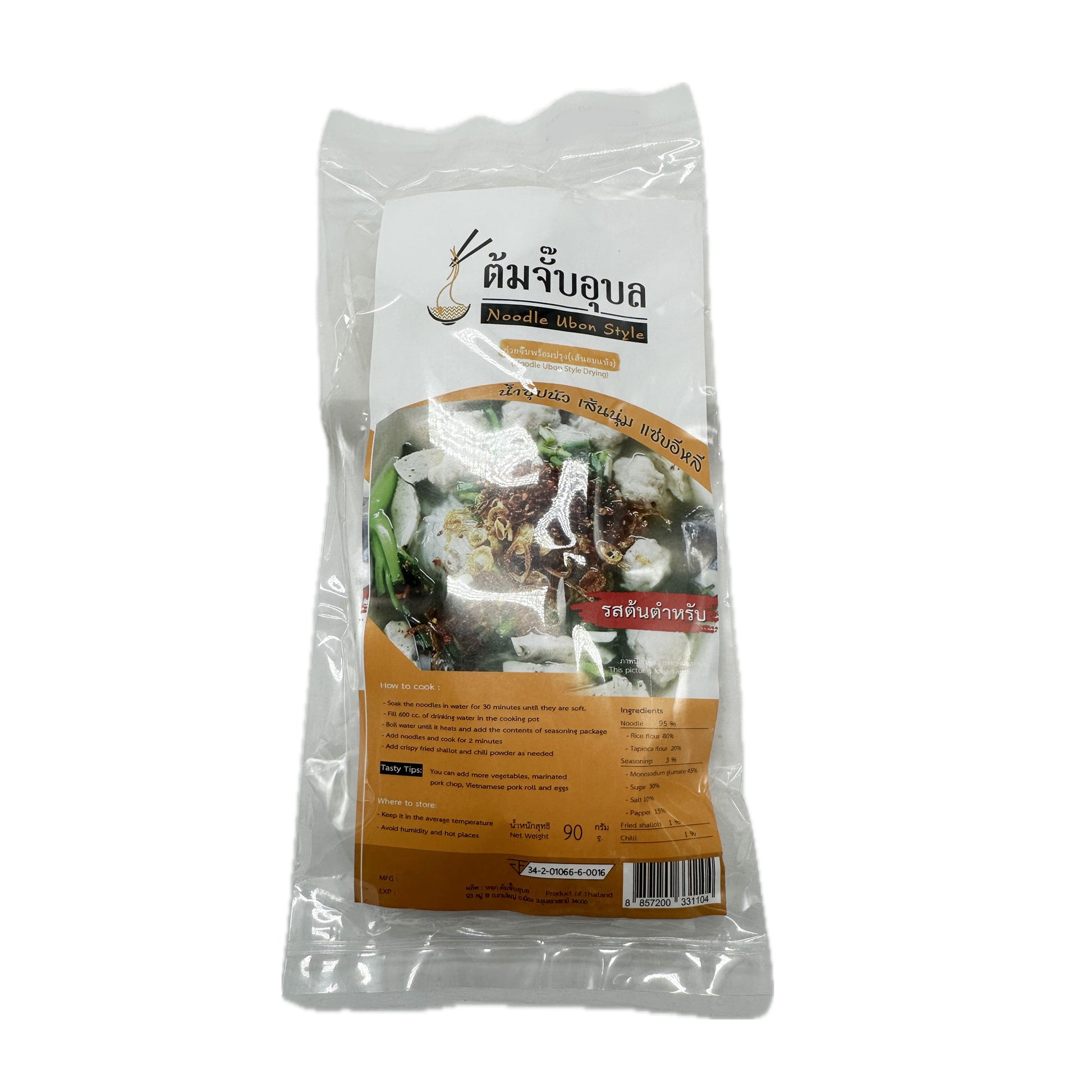 Authentic Ubon-style dried noodles ready to cook in minutes. This 90g package delivers the distinctive flavors of Thailand's beloved noodle soup tradition. Simply add hot water and your favorite broth or sauce for a satisfying meal that captures regional taste. Perfect for quick lunches, late-night cravings, or when you're craving genuine Thai comfort food at home. A convenient way to enjoy traditional Ubon noodles anytime.